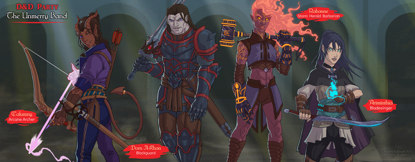 Meet Koh, the male disguise Kalara donned to evade her Guild pursuers at the beginning of our tabletop campaign. Koh was known as a dangerous dissident, a smooth-talking criminal, and a master thief…all things Kalara wasn’t necessarily good at, but she had enough charisma to convince everyone through rumor and charm she could do these things! In this pose, she’s letting the look slip a bit with her shirt open to reveal her chest wraps and the dye covering her fiery red hair fading out.