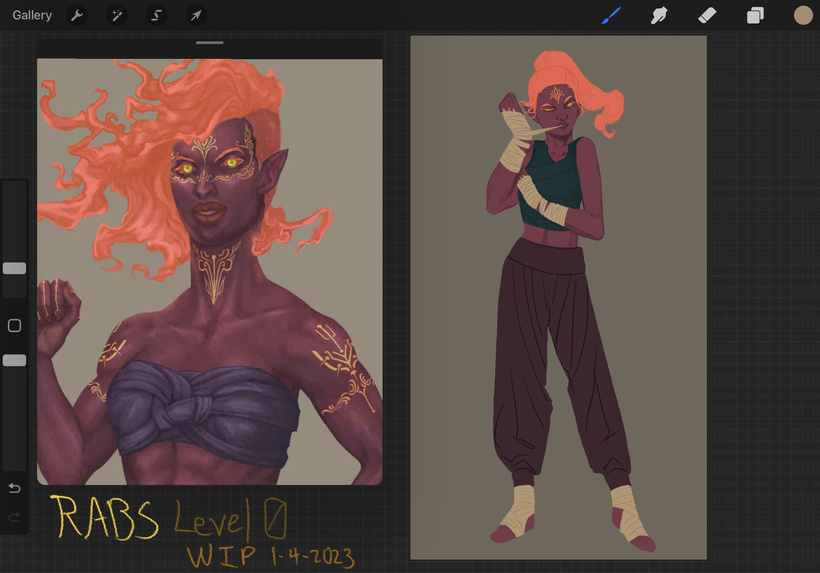 Another purpose of this challenge was to get to know my character in a more realistic style. Up until now, I’ve drawn Kalara in a more anime-inspired style, but now I want to match the art style of the more recent edition of Exalted. Anime doesn’t always translate to realism well, however, so it’s been a bit of a struggle for me!