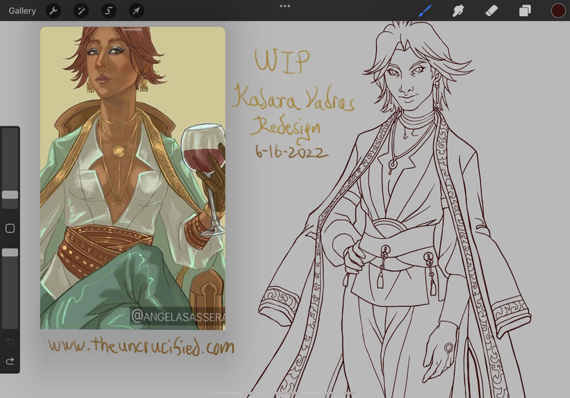[WIP of the line art for Kalara’s revised look.