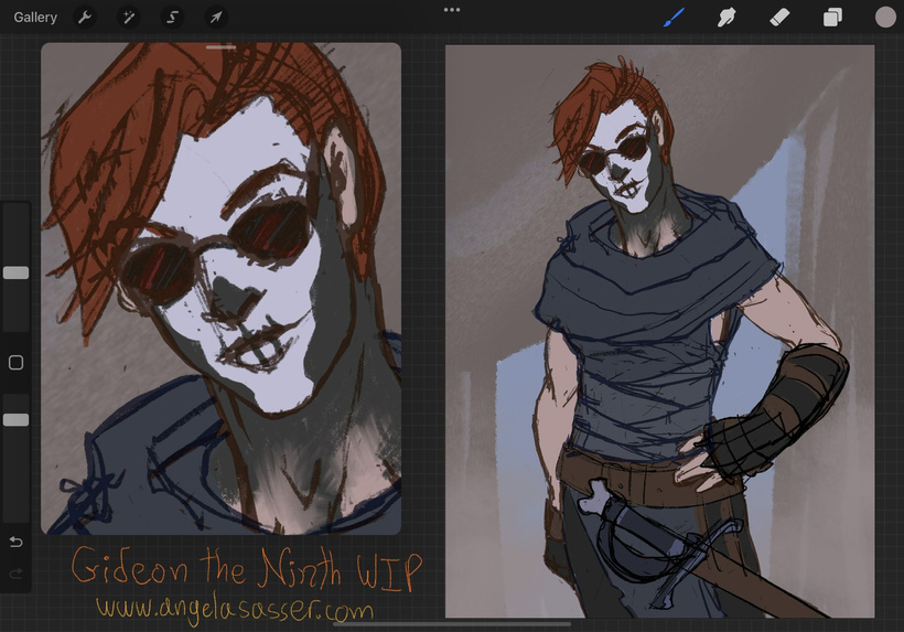 Lately I’ve been trying to catch up on my Fantasy genre reading.  Gideon the Ninth was high on that list (check out my spoiler free review if you like).  It was a fun ride full of skeletons, sarcasm, and murder and I really enjoyed it!  The combination of mystic necromancy and scifi really inspired me and thus these sketches were born!