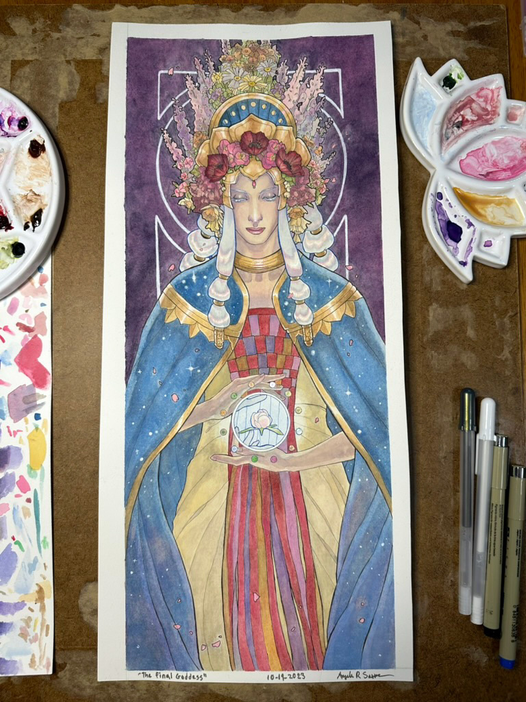 This collection has been years in the making and after hours of inking, painting, and toil, I have finally completed “The Final Goddess”, the 13th Goddess in the Birthstone Goddesses series!
