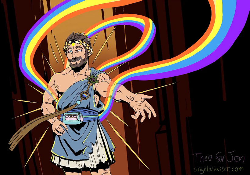 Theodotus is a bombastic Zenith Caste who beams rainbows from his heroic anima.  The energetic style of the Hades video game seemed like a perfect fit for him. I absolutely adore this style and always wanted to try it myself!  This style involves clean line work and bold highlighting for a signature look. I definitely want to play with it more, as it suited my own proclivity for line art and elegance very well.