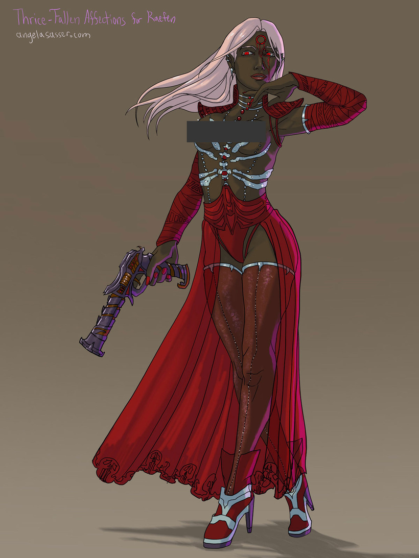 This was just a fun, silly mashup idea that came to me when I first played this game that made for excellent art practice.  Also a hint of the kind of art I’m moving towards, as it was also an experiment in nurturing a more painterly dark style inspired by Tarot (specifically the Klimt-esque aesthetic brought to the Dragon Age Tarot cards).