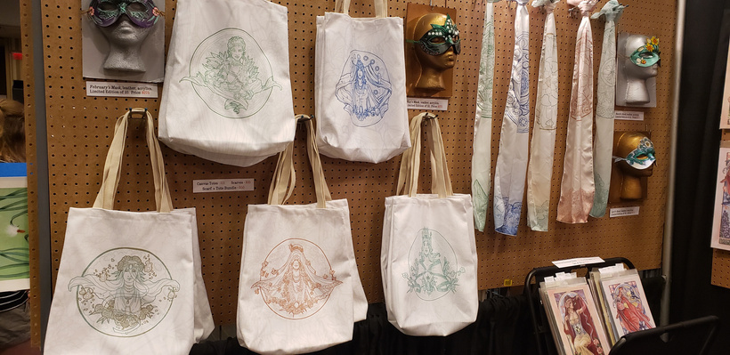 I always like to do a write-up if I can.  DragonCon is such a massive show and always a great event for testing out new, ambitious things!  I’ve been working hard towards it for a long time before the event to make new products to debut, such as the tote bags and scarves.  This was also the first time I’ve ever had to fill such a large space at 8 x 10 feet! It was an intimidating prospect!
