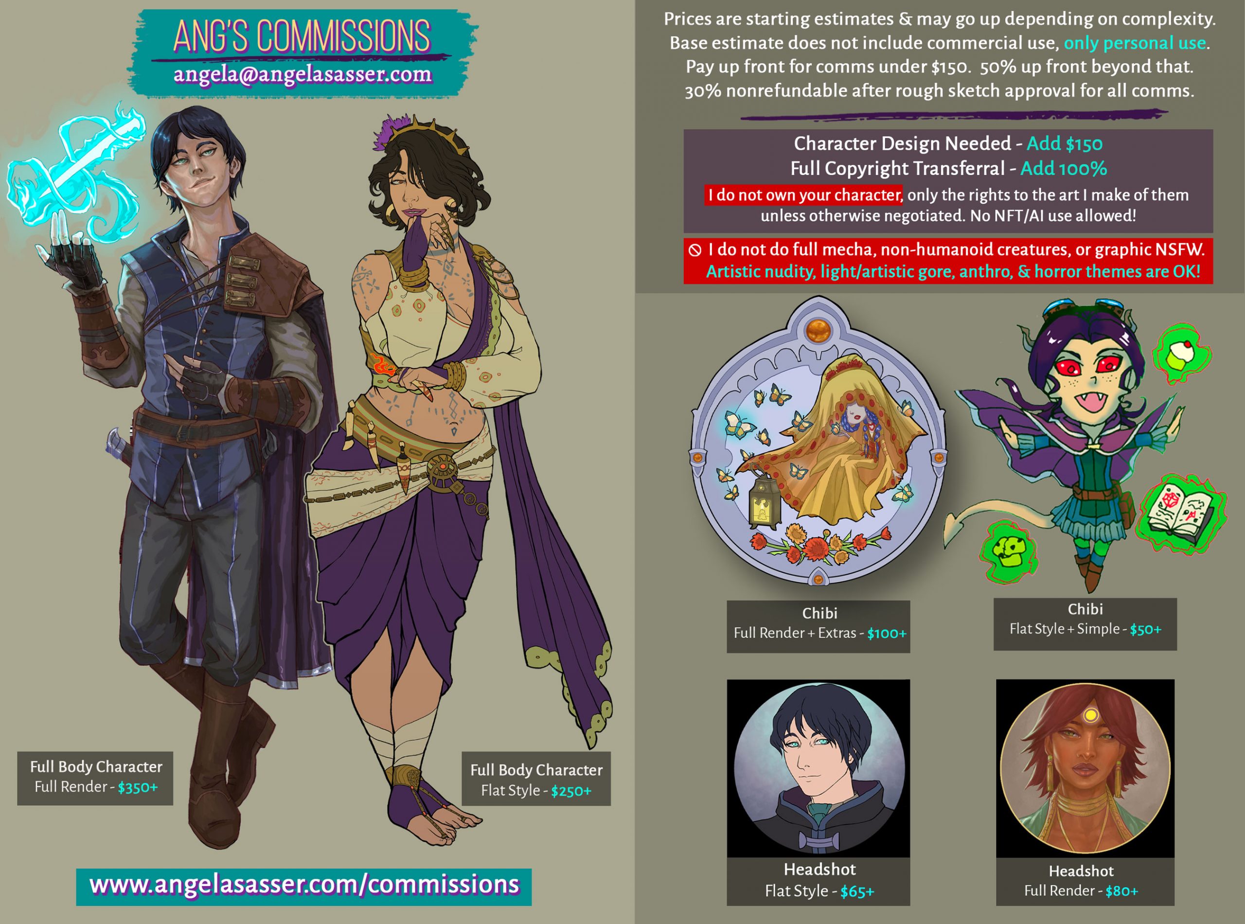 Interested in commissioning me for custom art for personal or commercial use? I specialize in the following: