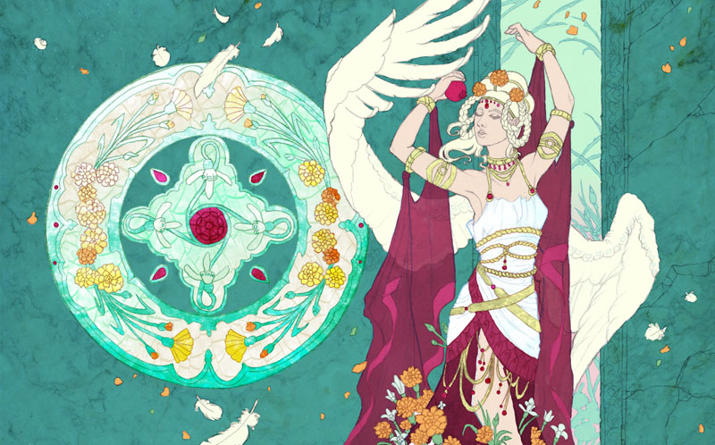 Springboarding from Sam’s theme, I lightened it up with sunbeams and a sunrise themed ‘spring’ realm behind her. |