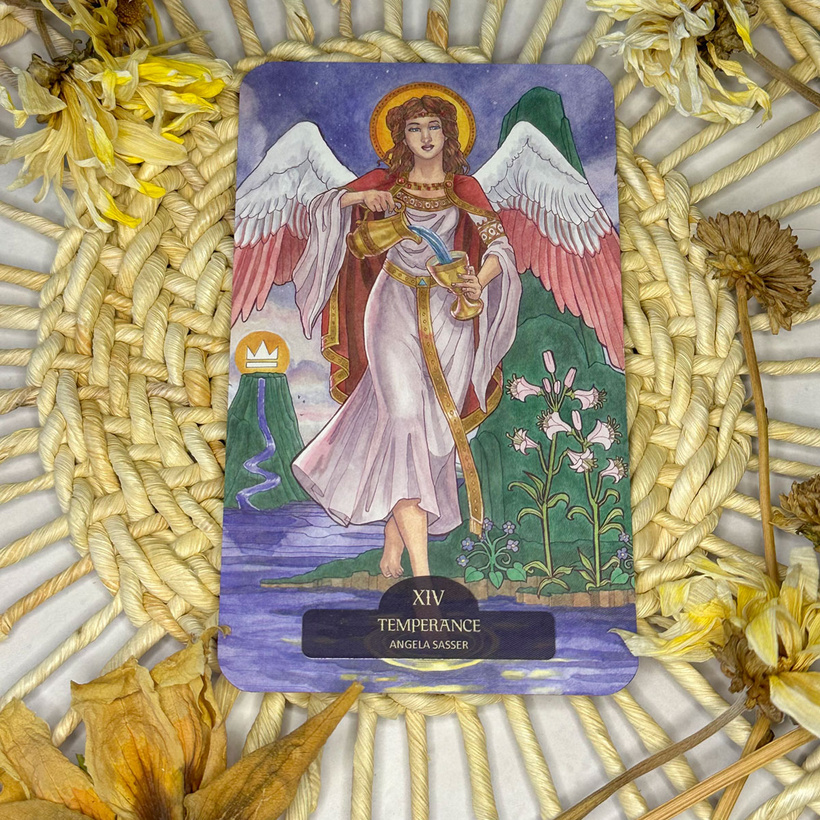 I was responsible for the Temperance card of the Major Arcana (which I shared more Behind the Scenes about its creation here). This card’s themes of balancing and tempering one’s strengths and weaknesses appeals to my ongoing journey as an artist seeking self-discovery and improvement.